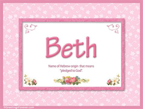 First and foremost, let's address the elephant in the room - what does the name Beth actually mean? Well, my curious friend, prepare to be amazed, for the name Beth is derived from the Hebrew name Elisheba, which translates to God is my oath. Yes, you read that correctly - God is their oath! Imagine having such a profound connection to the divine right from the moment you are named.